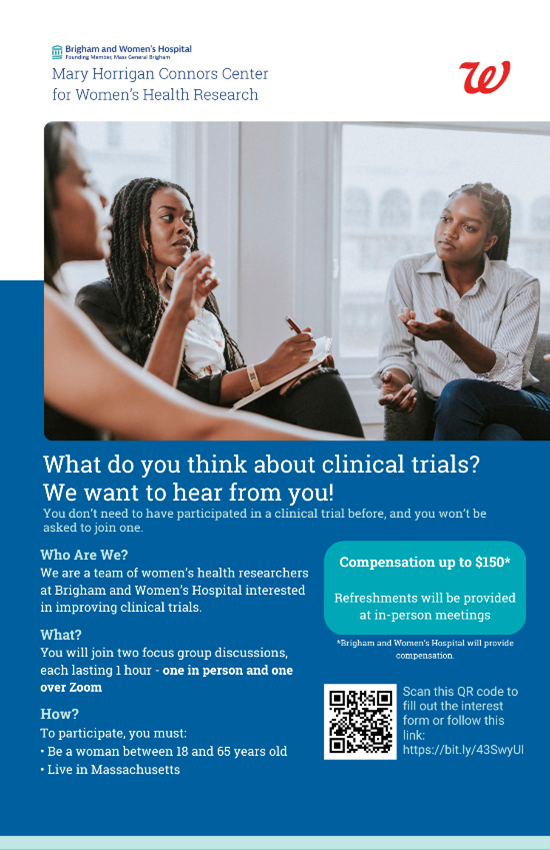 To better understand what shapes women’s perspectives on clinical trial participation, the Connors Center for Women’s Health Research at Brigham and Women’s Hospital conducted a national survey of more than 5,000 women across the United States. The most commonly reported barriers included limited understanding of clinical trials, lack of culturally and linguistically appropriate materials, and mistrust in the research community. Conversely, women identified trusted sources of information and altruism—particularly a desire to help other women—as key motivators for participation.